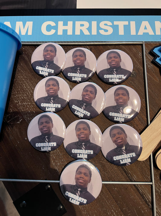 Custom Celebration Pin Buttons, Shipped! Custom Event Pin Buttons! Custom Theme Pin Buttons!